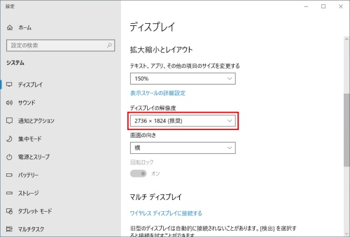 Windows 10 デスクトップの解像度を変更する